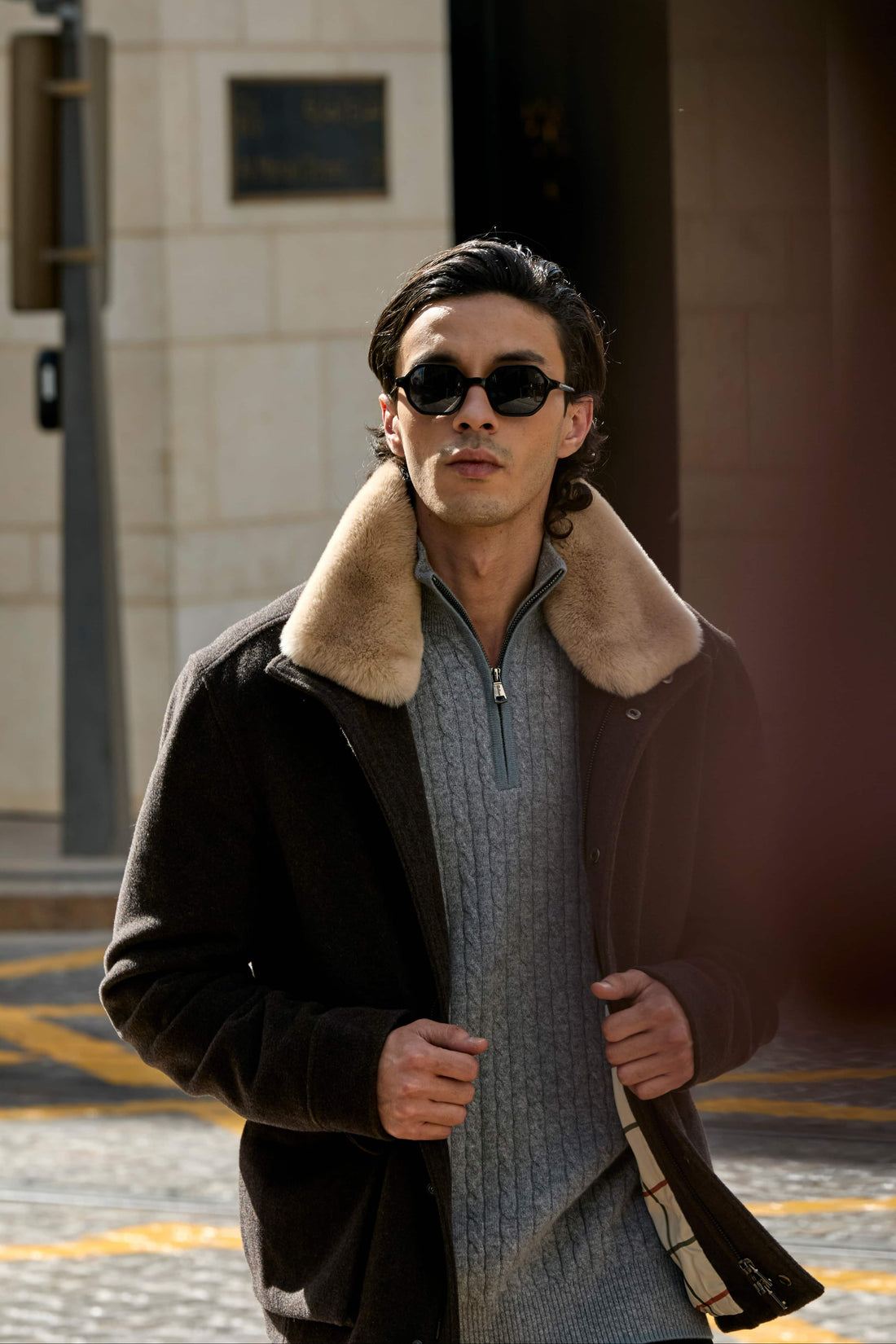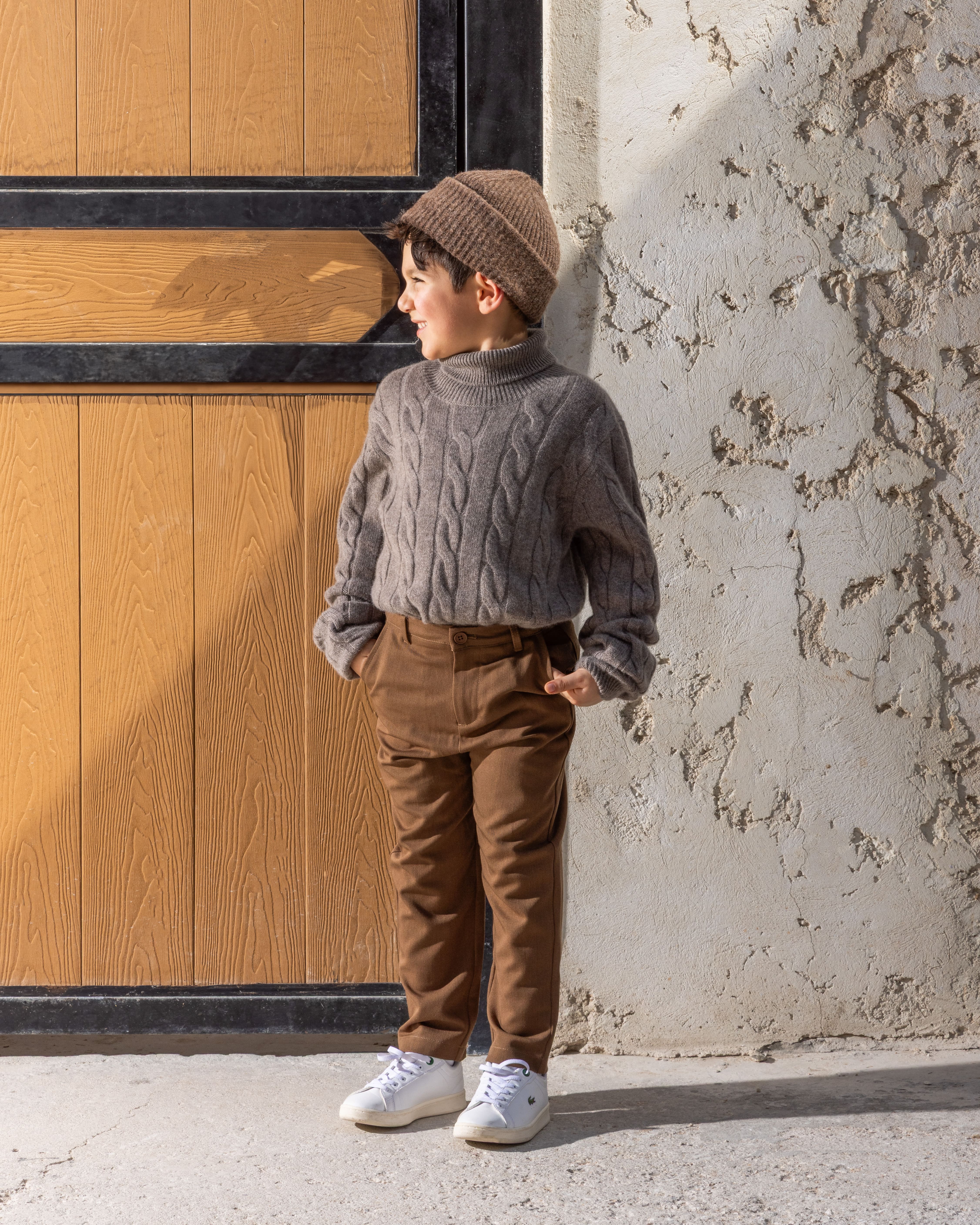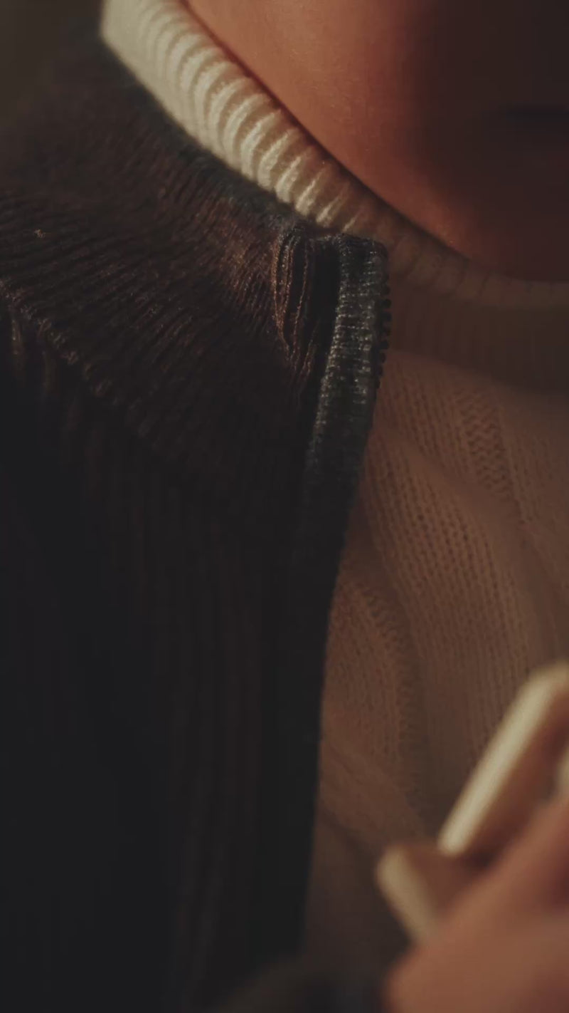 بلوفر صوف ميرينو بنص سحاب - بني غامق