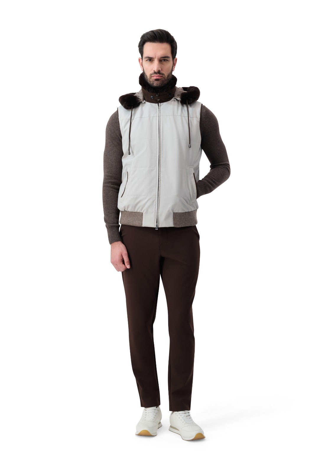 بلوفر صوف ميرينو بسحاب كامل - بني غامق